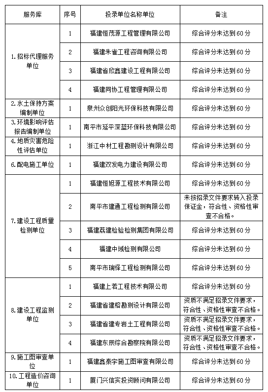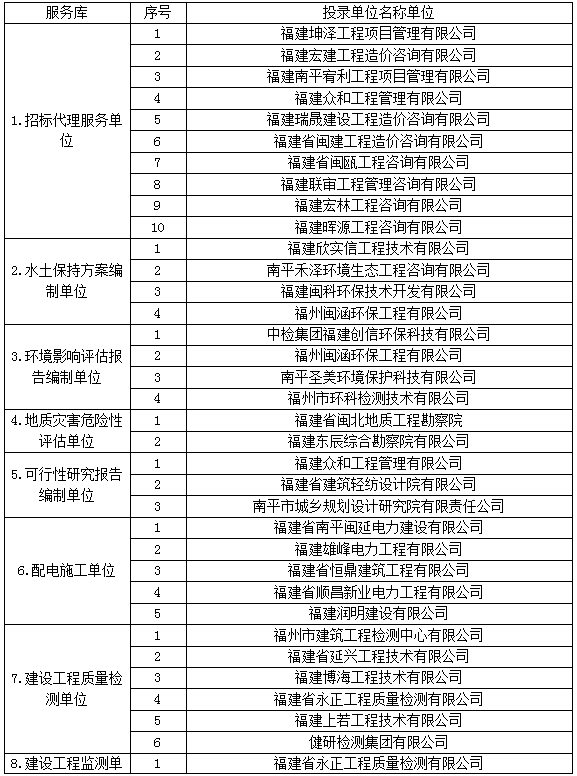 南平綠發(fā)集團有限公司2023年服務庫招錄于2023年7月26日08:30時在福建暉源工程咨詢有限公司評審,經(jīng)評審委員會對投錄文件進行評審,現(xiàn)將結果公示如下: 一、服務庫備選單位:
